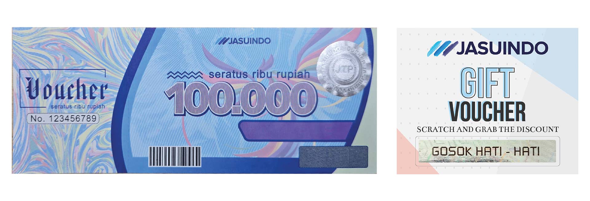 Vouchers and coupons with security features are the right solution for those of you who want to run promotions safely and on target. Jasuindo provides a wide selection of vouchers and lottery coupons with high security technology to ensure authenticity and prevent counterfeiting.